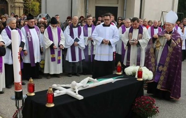 La un an de când a îngenuncheat la locul tragediei, Arhiepiscopul Ioan Robu s-a rugat din nou pentru victimele incendiului de la Clubul Colectiv, miercuri, 2 noiembrie, la Cimitirul Bellu catolic, în ziua în care Biserica Catolică se roagă în mod special pentru cei răposați.